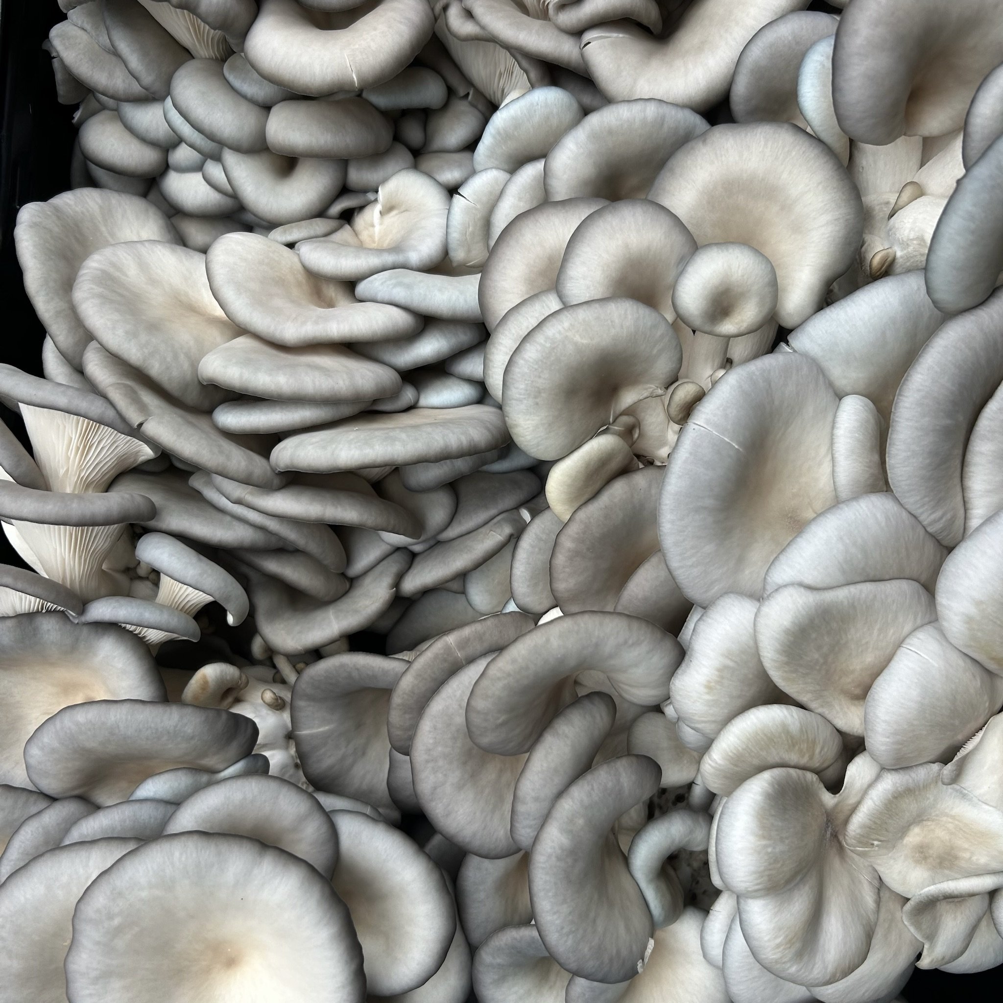 How to Cook: Blue oysters are highly versatile mushrooms and are delicious baked, fried, sautéed, or in soups. It’s recommended to trim off the tough stalk at the base of the cluster.